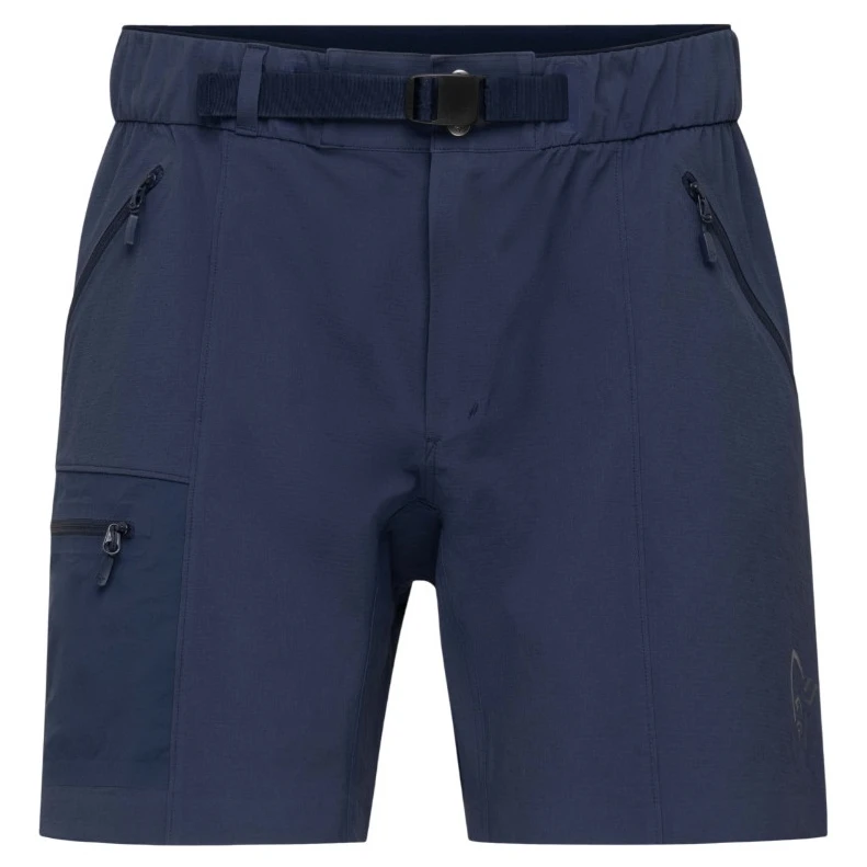 Вони виготовлені з матеріалу Flex1, який є тканиною ripstop з чотиристороннім розтягуванням. Вони забезпечують високу свободу рухів, стійкість до вітру, хорошу повітропроникність та ефективне відведення вологи. На талії шорти мають еластичний пояс та систему Custom-Fit з регулюванням за допомогою ремінця та пряжки, тому ви легко налаштуєте обхват без необхідності носити ремінь. Застібка вирішена блискавкою та кнопкою. Дрібні предмети можна зберігати у двох кишенях для рук та одній стегновій кишені на блискавці. Спортивний вигляд доповнює друковане лого Norrona.